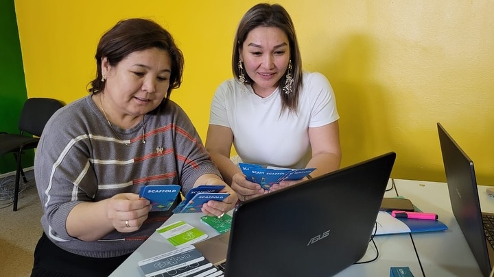 педагогтері Г.С.Шаңбас, Ж.Х.Хамза «Talap» КЕАҚ «SKAFFOLD- құралдарын пайдаланып оқу сабақтарын жобалау (педагоги ООД)» бағдарламасы бойынша курстан өтіп жатыр.