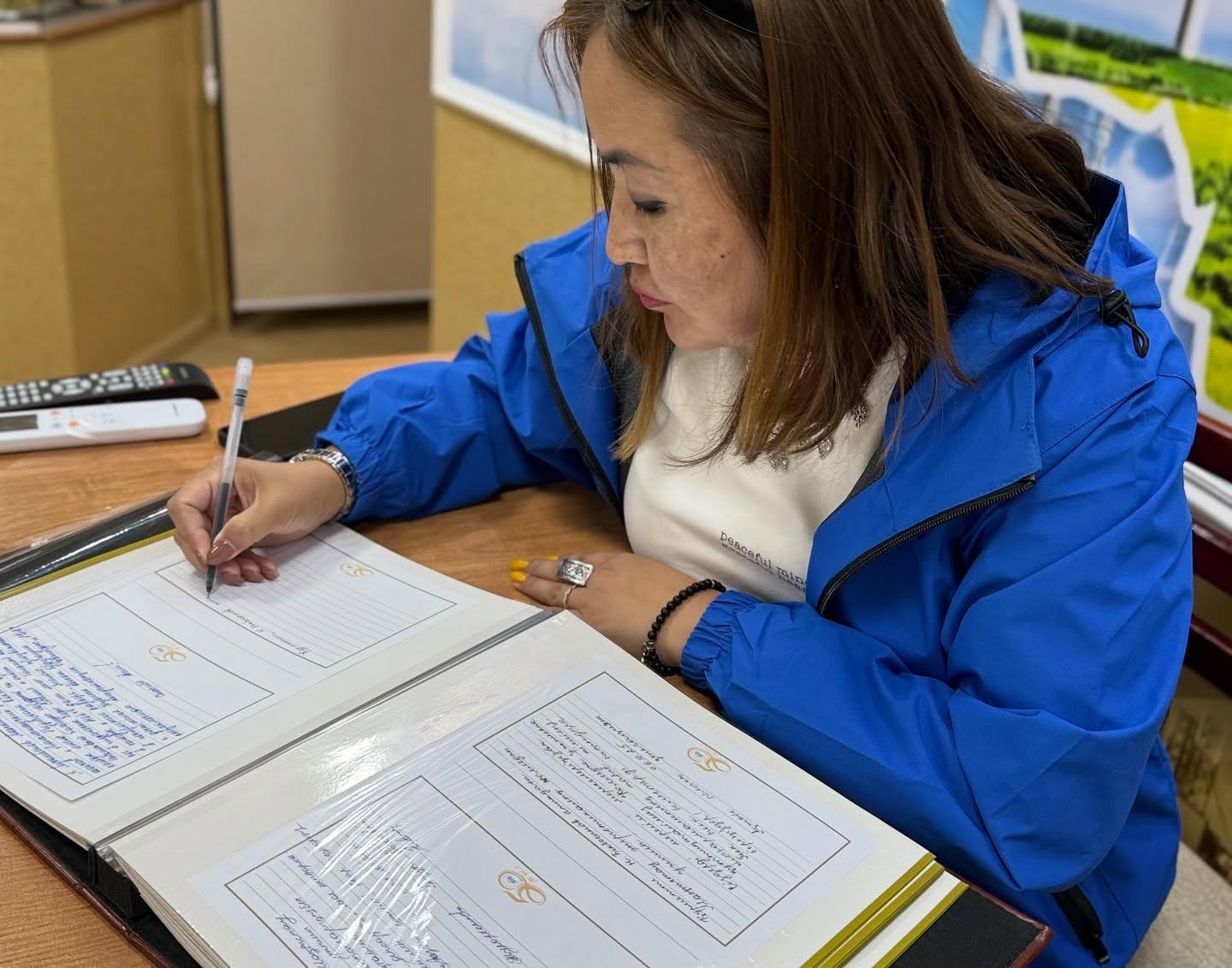 Кездесу соңында қадірлі делегаттар тілек дәптеріне өздерінің жүрекжарды лебіздерін жазып, жылы тілектерін қалдырды.