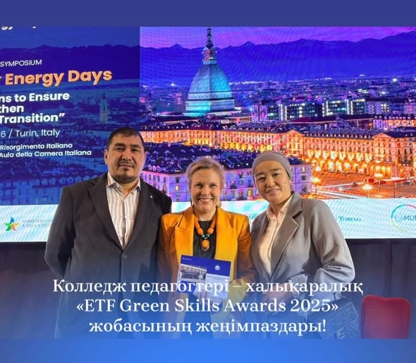 Авторские проекты преподавателей Карашаева Досана Элыповича и Ондахановой Айнур Амангельдыевны на тему «Роль современных образовательных программ в развитии зелёных технологий» вошли в топ-5 лучших проектов престижного международного конкурса «ETF Green Skills Awards 2025», организованного Европейским фондом образования (ETF).