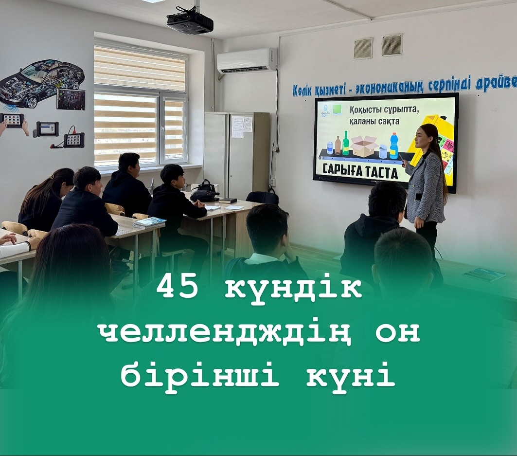 В ходе мероприятия студентам рассказали о сортировке бытовых отходов, важности охраны окружающей среды и экологическом проекте «Бросай в жёлтый» («Сарыға таста»).