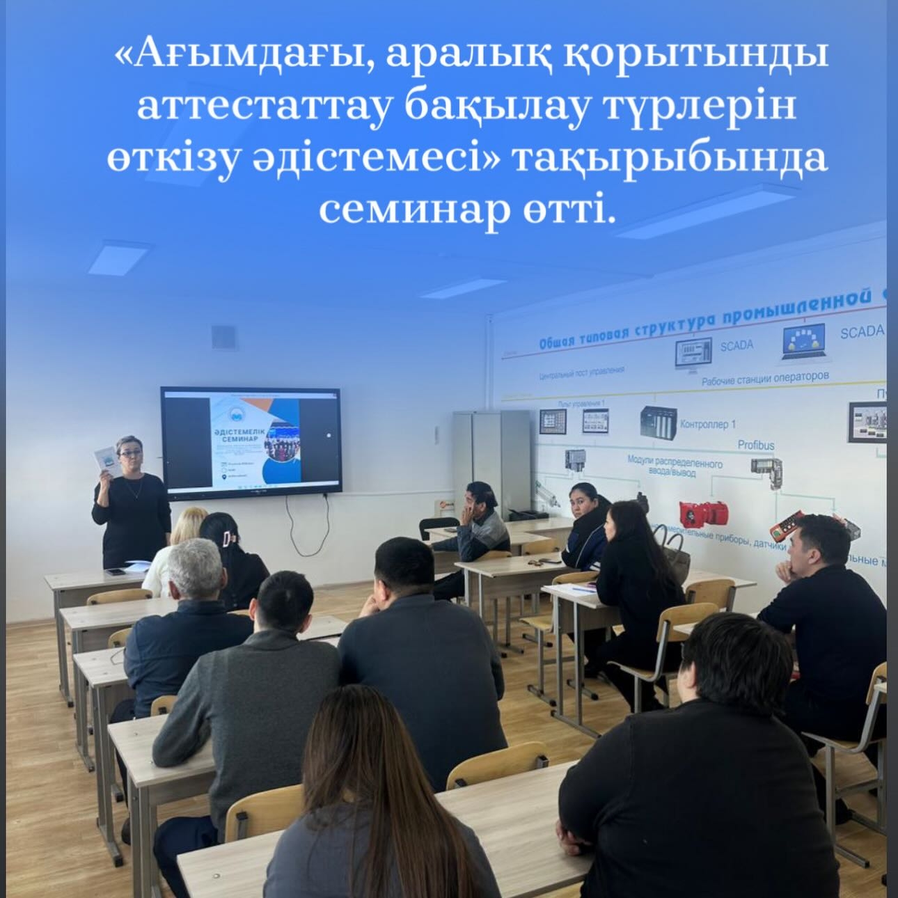Нұрлыхан Бекбосынов атындағы Маңғыстау энергетикалық колледжінде оқу-әдістемелік жұмыс жоспарына сәйкес «Ағымдағы, аралық қорытынды аттестаттау бақылау түрлерін өткізу әдістемесі» тақырыбында семинар өтті.