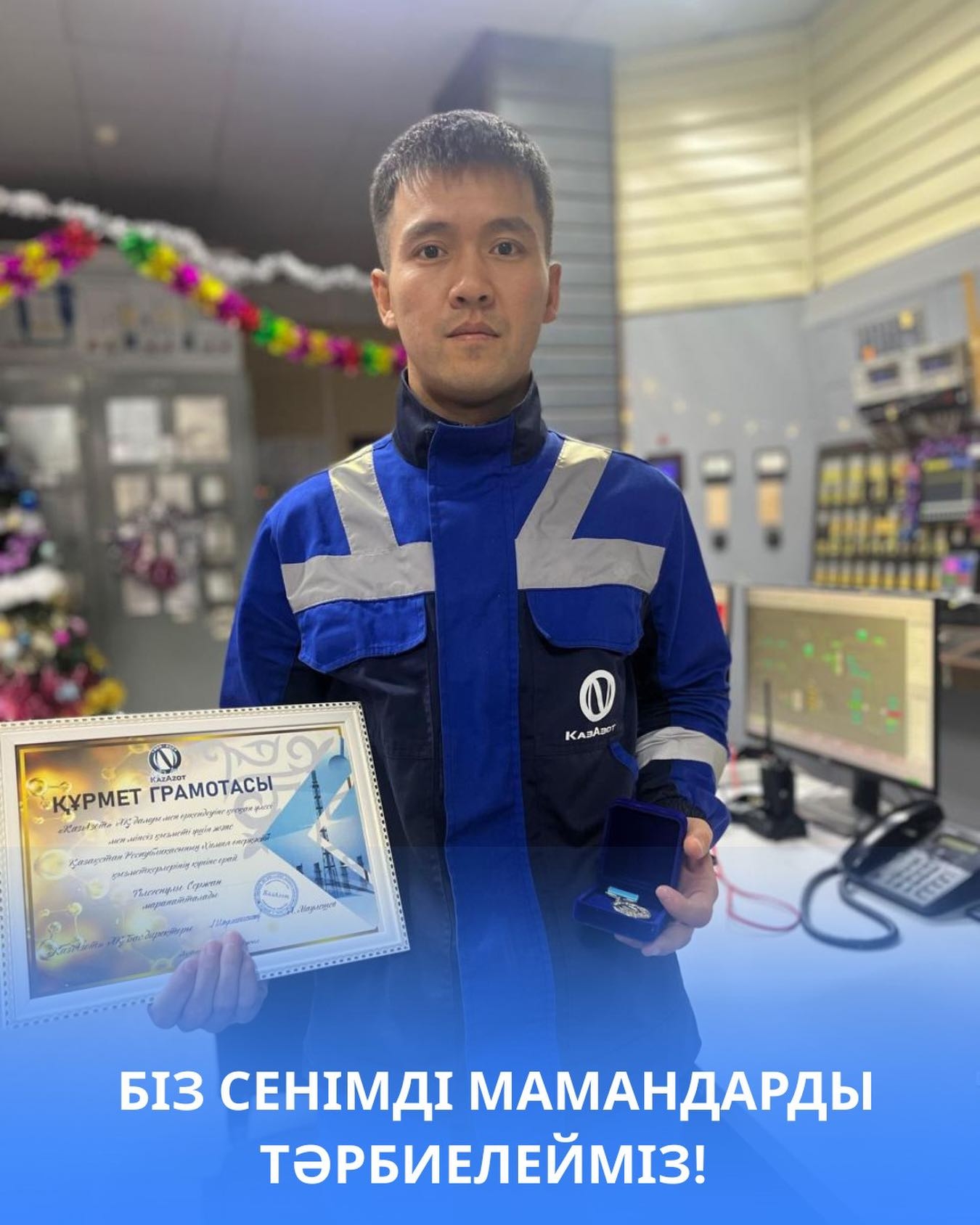 Өз ісіне жауапкершілікпен қарап, теория мен практиканы ұштастыра білген Сержан Химия өнеркәсібі күніне орай АҚ «ҚазАзот» мекемесінің атынан марапатқа ие болды. Бұл – студентіміздің еңбегіне берілген жоғары баға, табандылық пен кәсіби өсуге деген ұмтылыстың нақты дәлелі.