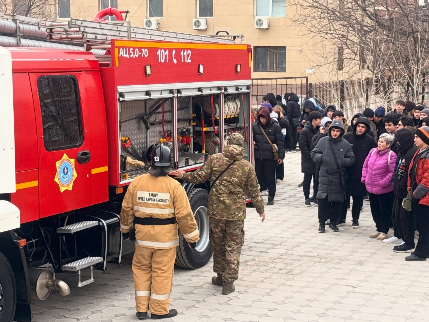 Іс-шара барысында білім алушылар мен қызметкерлерге өрт қауіпсіздігі ережелері түсіндіріліп, өрт болған жағдайда эвакуациялау тәртібі мен алғашқы іс-қимылдар көрсетілді. Оқу-жаттығу жиыны қатысушылардың қауіпсіздікке деген жауапкершілігін арттыруға бағытталды.