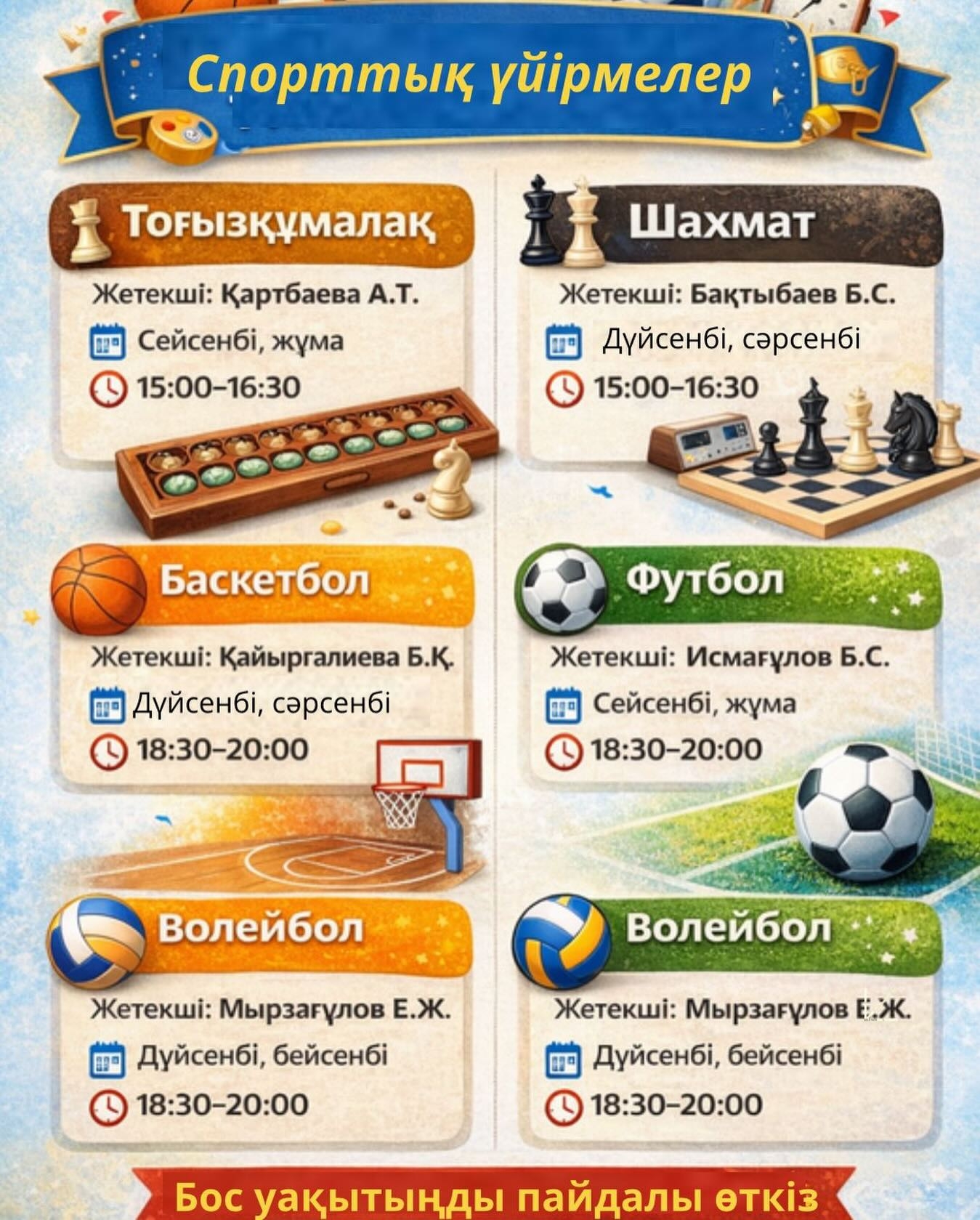 Уақытыңды тиімді пайдаланып, спортпен шыңдал!