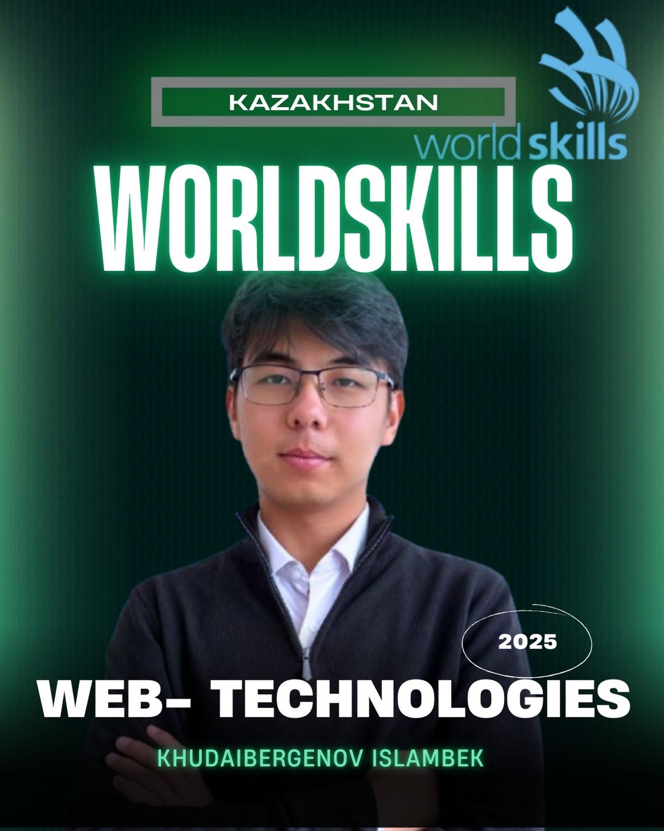Талантливый студент нашего колледжа, Исламбек Худайбергенов, официально примет участие в чемпионате WorldSkills Kazakhstan–2025 в Астане по компетенции «Веб-технологии»!