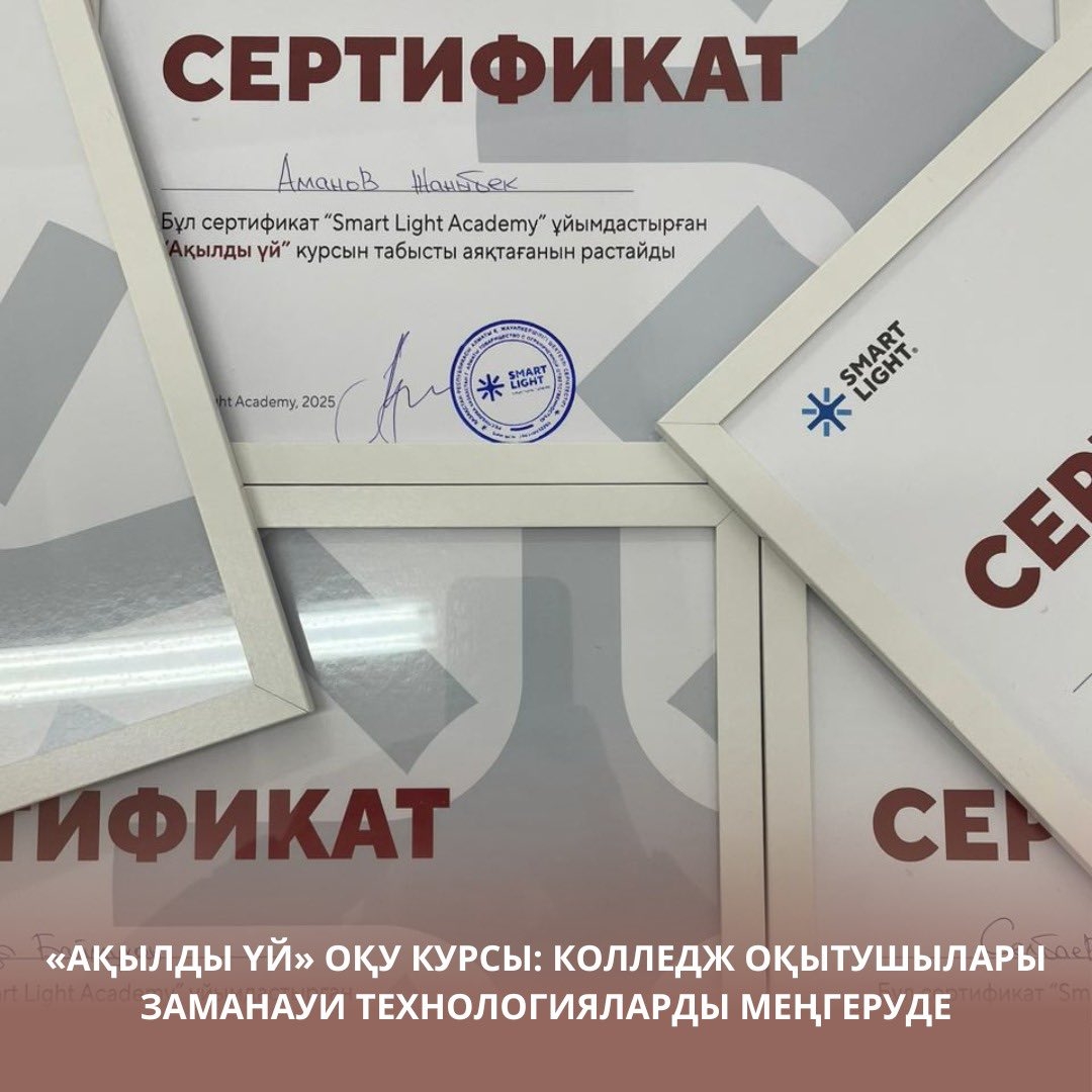 Преподаватели нашего колледжа приняли участие в современном обучающем курсе «Умный дом», организованном ТОО «Smart Light Academy», и повысили свою квалификацию.