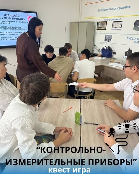 29.12.25 в Мангистауском энергетическом колледже имени Н. Бекбосынова преподаватель специальных дисциплин Л.А. Айтбаева провела квест-игру на тему «Контрольно-измерительные приборы» со студентами группы АиУ-1/24.