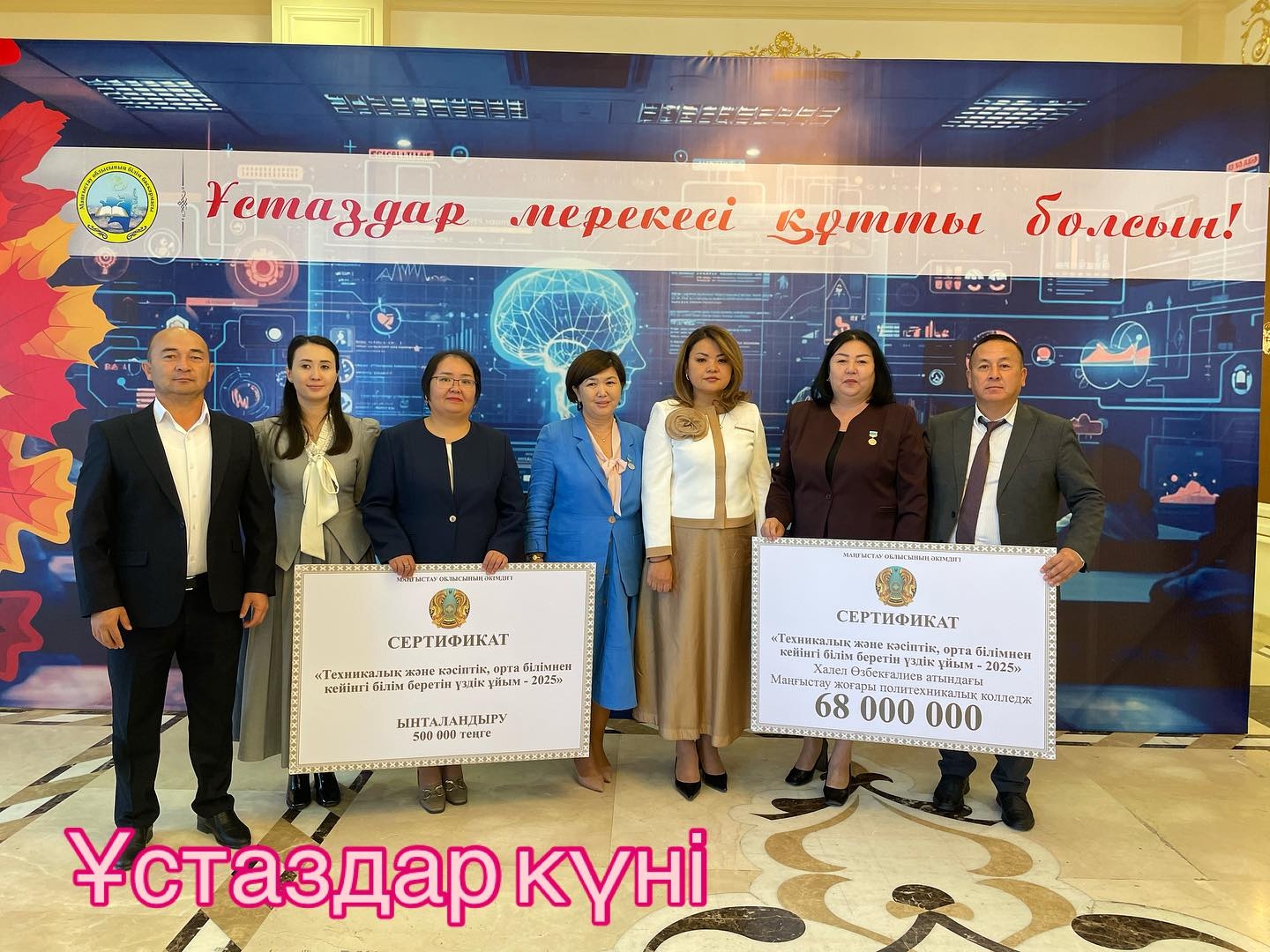 Для Мангистауского энергетического колледжа имени Н. Бекбосынова этот день стал особенно радостным событием — наш колледж был удостоен поощрительной премии в размере 500 000 тенге в рамках конкурса «Лучшая организация технического и профессионального, послесреднего образования».